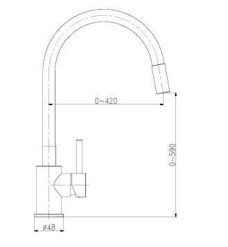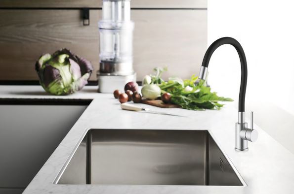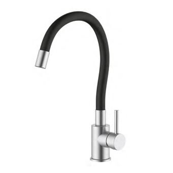 Η διχρωμία μαύρο-χρωμέ ματ ταιριάζει ιδανικά σε σύγχρονους χώρους, ενώ το εύκαμπτο στόμιο διευκολύνει τον καθαρισμό σκευών και του νεροχύτη, προσφέροντας ευελιξία στη ροή του νερού.
