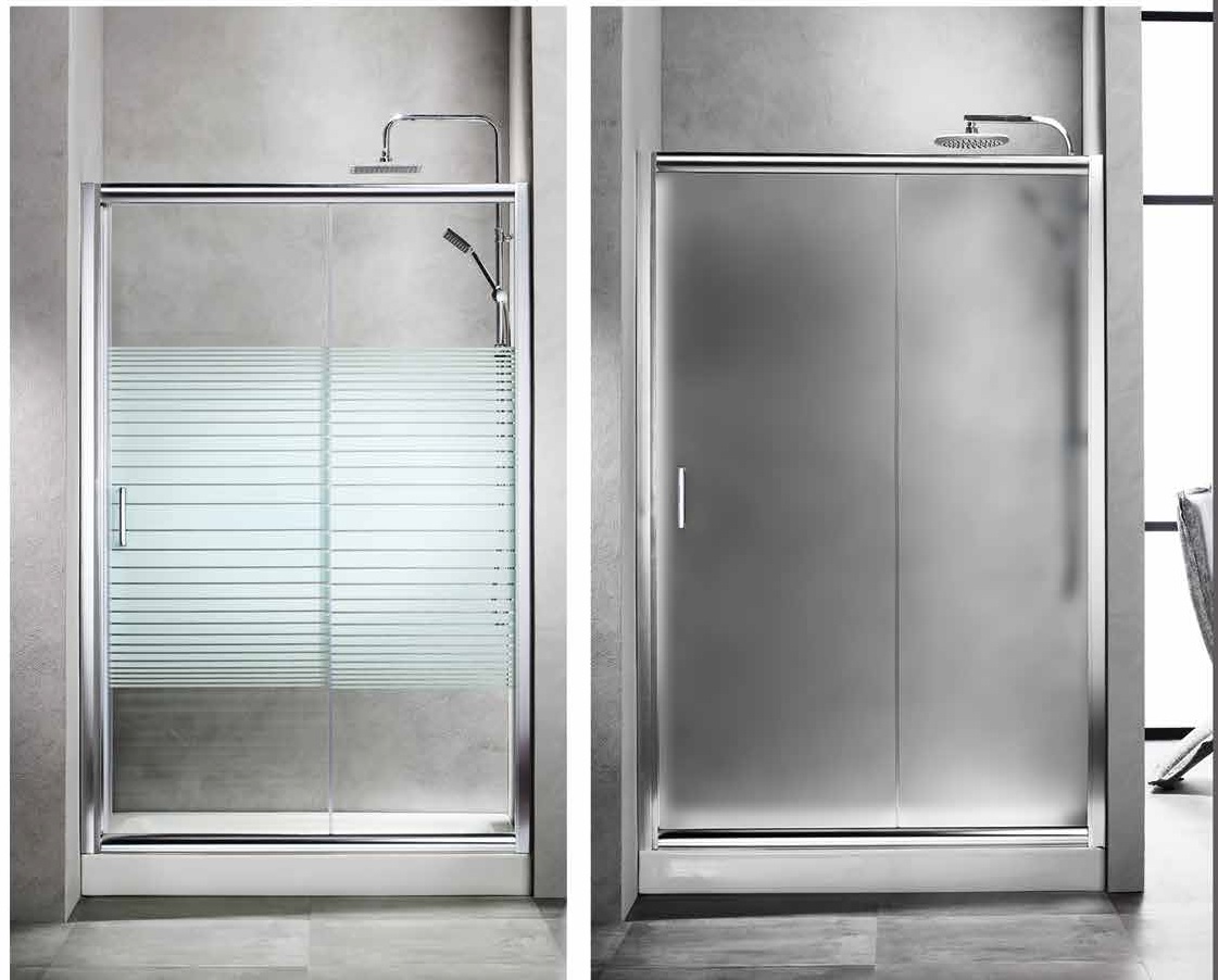 Συρόμενη πόρτα καμπίνας ντους NEW TEMA STRIPES/FROSTED, κατασκευασμένη από κρύσταλλο ασφαλείας 6 mm και κομψό χρωμέ προφίλ