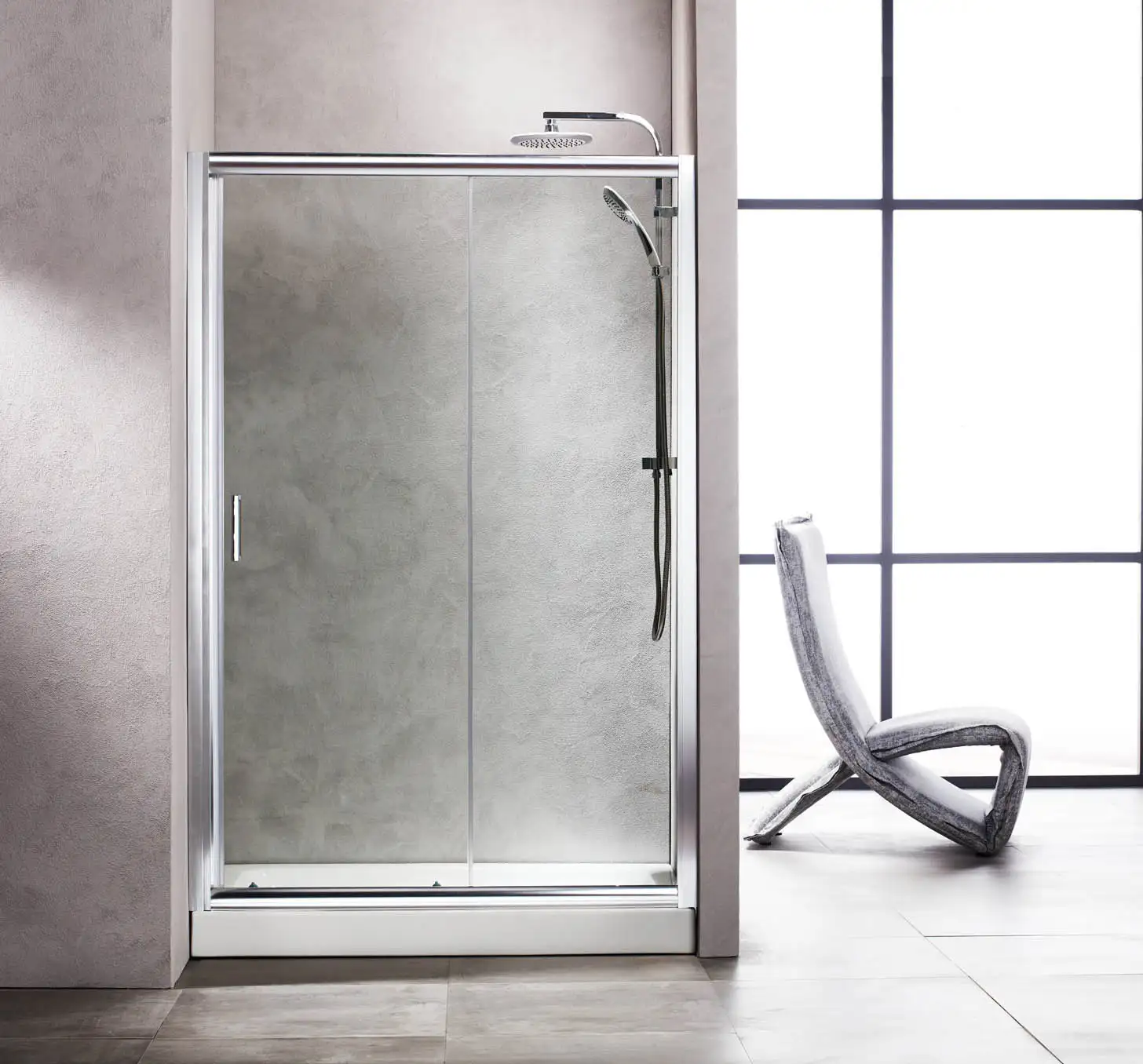 Συρόμενη πόρτα καμπίνας ντους NEW TEMA CLEAR, κατασκευασμένη από κρύσταλλο ασφαλείας 6 mm και κομψό χρωμέ προφίλ