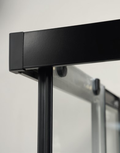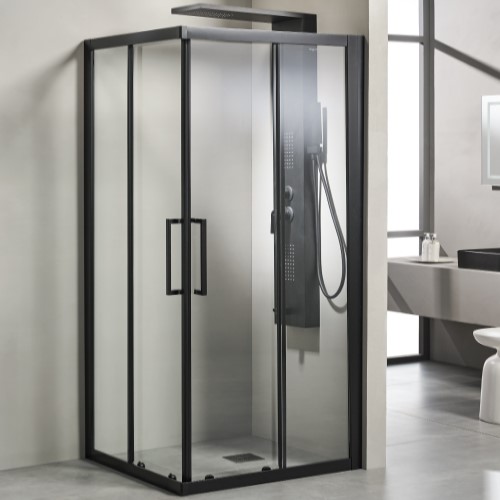 Η καμπίνα της σειράς Versus 400 σε Μαύρο Ματ χρώμα της TEMA, είναι γωνιακής εισόδου και αποτελείται από 2 σταθερά και 2 συρόμενα φύλλα.