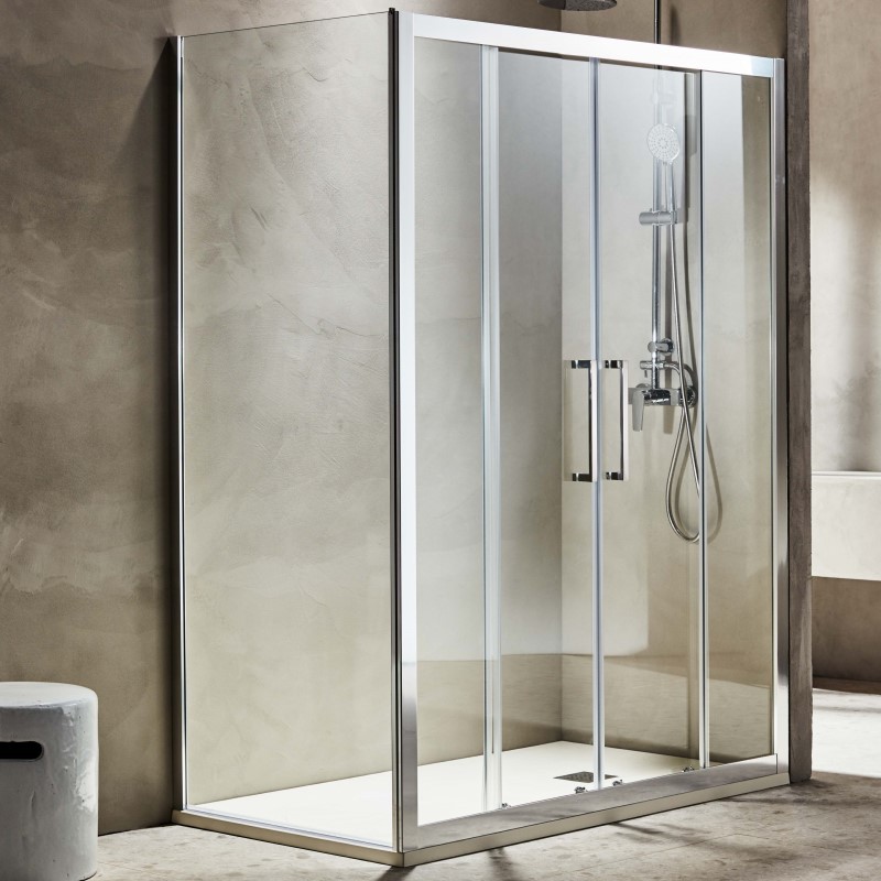 Το σταθερό πλαϊνό της σειράς VERSUS 400 είναι ιδανικό για συνδυασμό με πόρτες ντους της ίδιας σειράς ή για ανεξάρτητη τοποθέτηση σε μοντέρνα μπάνια. Κατασκευασμένο από κρύσταλλο ασφαλείας 6 mm και προφίλ αλουμινίου σε χρωμέ χρώμα, προσφέρει υψηλή αντοχή, κομψότητα και σταθερότητα.