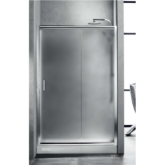 Βαρέως τύπου ευθύγραμμη πόρτα ντους, με 1 σταθερό φύλλο & 1 συρόμενη πόρτα με σχέδιο αμμοβολής (frosted)