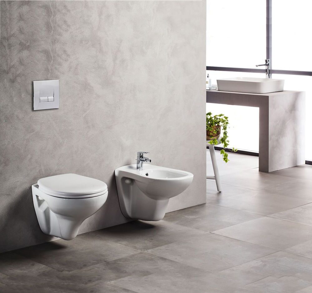 Είναι μια λεκάνη πισωστόμια (οριζόντιας αποχέτευσης), κατασκευασμένη από υαλοποιημένη πορσελάνη υψηλής αντοχής, η οποία παραμένει αναλλοίωτη στον χρόνο και τη χρήση. Η λεία, μη απορροφητική επιφάνειά της εμποδίζει τη συσσώρευση αλάτων και διευκολύνει τη συντήρηση.