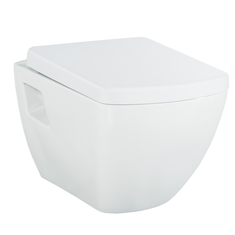Κρεμαστή λεκάνη WC, με μοντέρνο τετράγωνο σχεδιασμό, χωρίς κάλυμμα. Κατάλληλη για εγκατάσταση με καζανάκι εντοιχισμού.