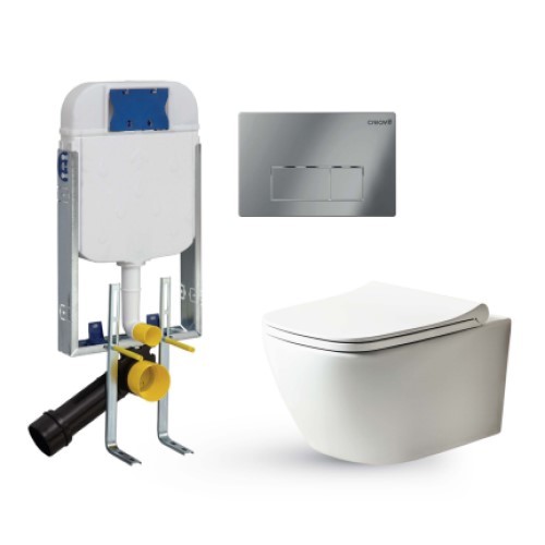 Το Σετ Λεκάνη Κρεμαστή με Καζανάκι Εντοιχισμού 5001-200 της Creavit, είναι σχεδιασμένο για εγκαταστάσεις όπου απαιτείται κρυφό καζανάκι πίσω από τον τοίχο, προσφέροντας καθαρή και μοντέρνα εικόνα στο μπάνιο. Το σετ περιλαμβάνει καζανάκι με κωδικό GP8004.00.