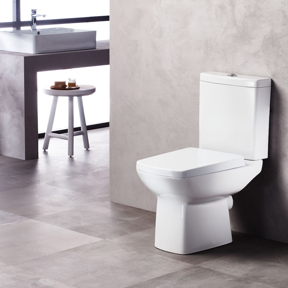 Καζανάκι LR410: Εργονομικό καζανάκι που εφαρμόζει ακριβώς πάνω στη λεκάνη, δημιουργώντας ένα ενιαίο οπτικό σύνολο.