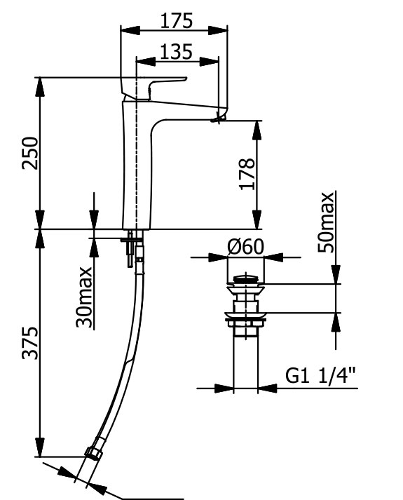 7814N/4814N IMOLA ΨΗΛΗ ΜΠΑΤΑΡΙΑ ΝΙΠΤΗΡΟΣ ΜΕ ΒΑΛΒΙΔΑ BLACK MATT7814N/4814N IMOLA TALL BASIN FAUCET WITH OVERFLOW POP-UP BLACK MATT ποσότητα
