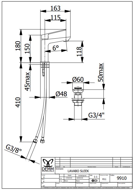9910N SLEEK ΜΠΑΤΑΡΙΑ ΝΙΠΤΗΡΑ ΜΕ POP-UP BLACK MATT9910N SLEEK BASIN FAUCET WITH OVERFLOW POP-UP BLACK MATT