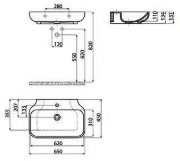 FE 065 FREE ΝΙΠΤΗΡΑΣ ΕΠΙΠΛΟΥ ΕΠΙΚΑΘΗΜΕΝΟΣ 45×65 cm (TR)FE 065 FREE MOUNTED WASHBASIN 45×65 cm (TR)