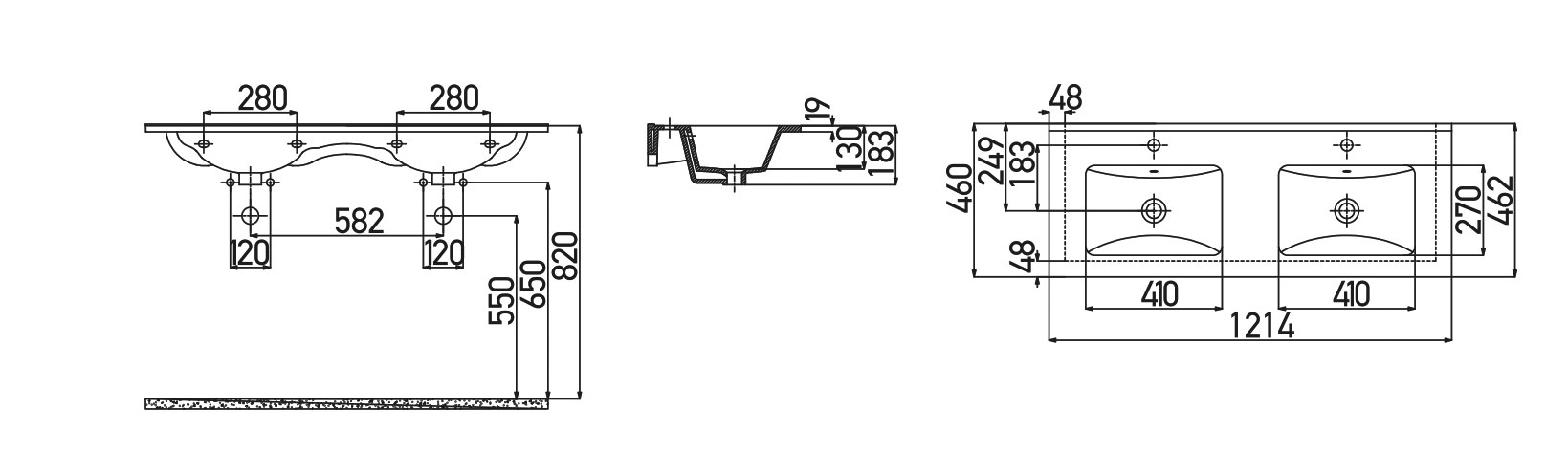 SU121 ΝΙΠΤΗΡΑΣ ΕΠΙΠΛΟΥ SLIM 46×120 cm (TR)SU121 FURNITURE WASHBASIN SLIM 46×120 cm (TR)