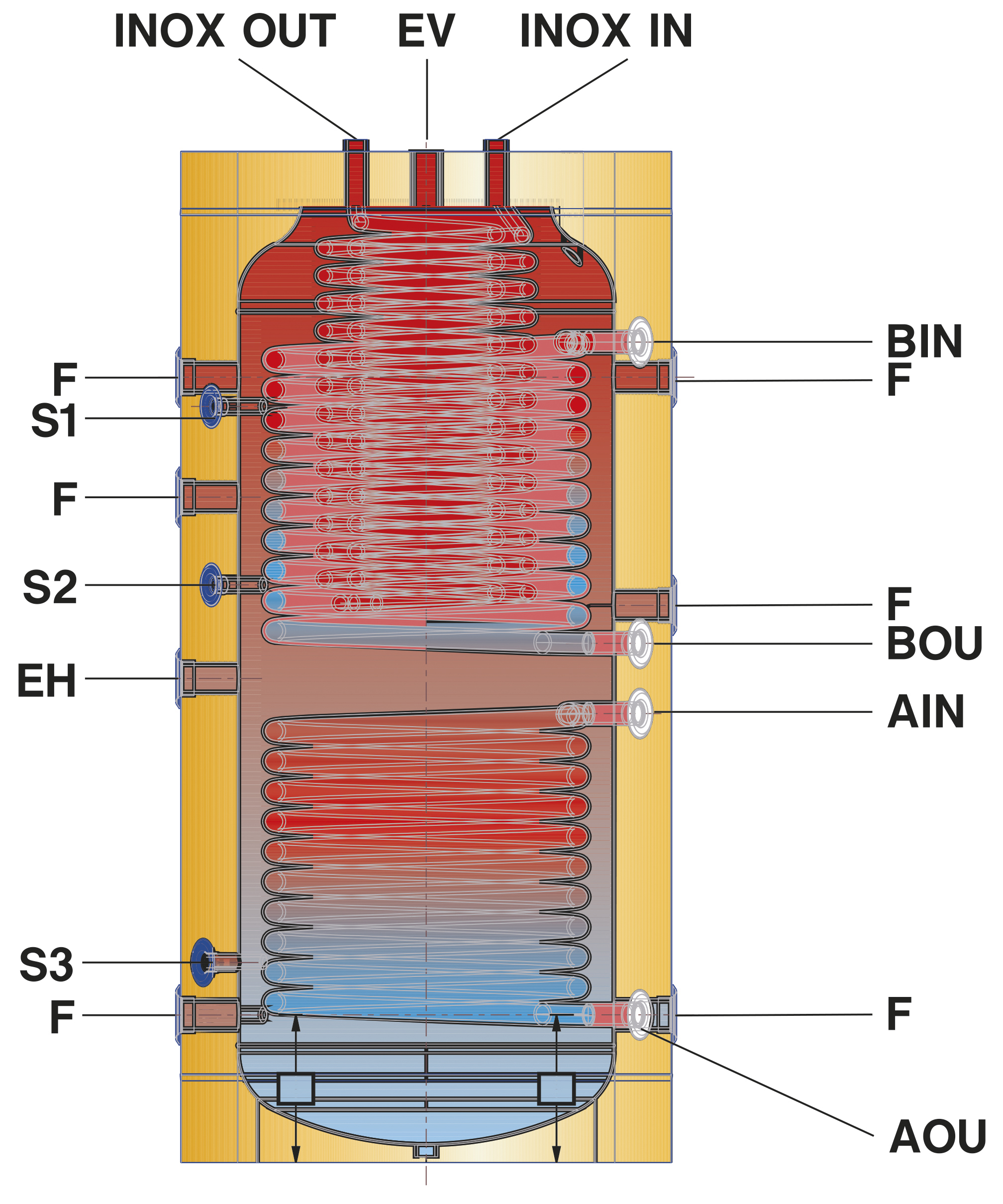 ΔΟΧΕΙΟ ΑΔΡΑΝΕΙΑΣ SAC2 CI 300L ΤΡΙΠΛΗΣ ΕΝΕΡΓΕΙΑΣ ΜΕ 2 ΕΝΑΛΛ. INOX ΣΕΡΠΑΝΤΙΝΑ RIVO ST) ποσότητα