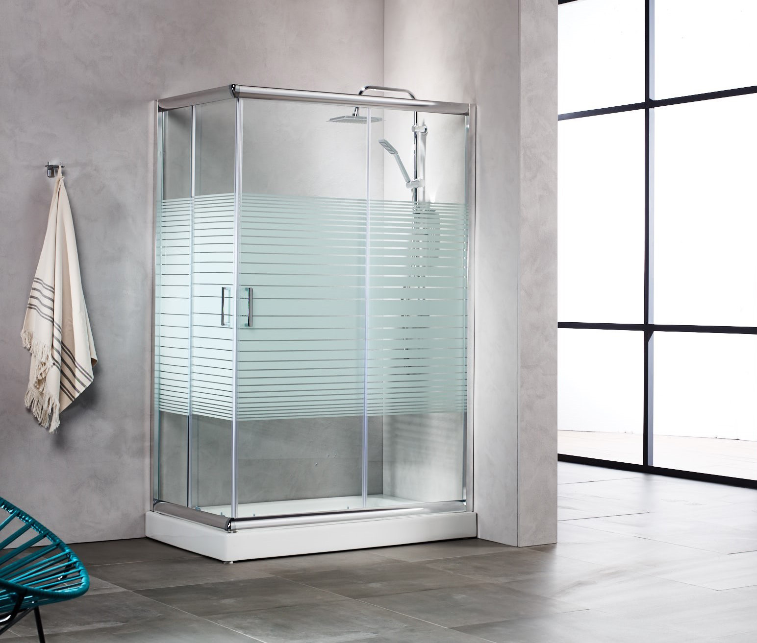Η καμπίνα ντουζιέρας NEW TEMA προσφέρει σύγχρονο design με λιτές γραμμές αναδεικνύοντας τον χώρο του μπάνιου και προσφέροντας αίσθηση ευρυχωρίας. Η παραλληλόγραμμη μορφή της είναι ιδανική για γωνιακή τοποθέτηση, ενώ το σχέδιο σεριγραφίας αναβαθμίζει τον χώρο σας αισθητικά