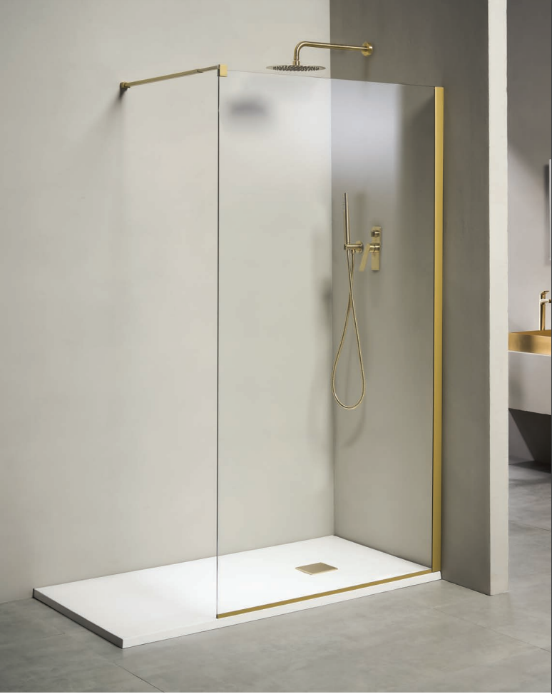 Το Free WALK-IN πάνελ είναι ιδανικό για όσους επιθυμούν ένα κομψό και σύγχρονο μπάνιο. Με το brushed gold φινίρισμα και το καθαρό γυαλί, προσφέρει μια αίσθηση πολυτέλειας και μοντέρνου σχεδιασμού. Η εγκατάστασή του είναι ευέλικτη, καθώς μπορεί να τοποθετηθεί είτε απευθείας στο δάπεδο είτε σε ντουζιέρα. Η υποστηρικτική ράβδος εξασφαλίζει σταθερότητα, ενώ η νανοτεχνολογία και η προστατευτική επικάλυψη CLEAN GLASS* διευκολύνει τη συντήρηση.